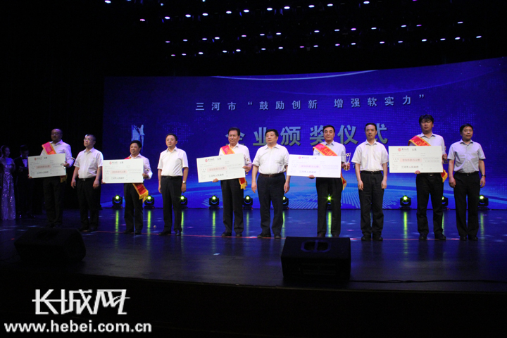 在頒獎儀式上,三河市領導為企業授獎。記者孫澤恒攝
