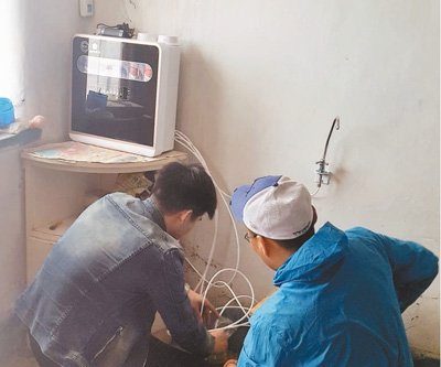 工作人員在內(nèi)蒙古巴林右旗牧區(qū)現(xiàn)場調(diào)試納米凈水器。