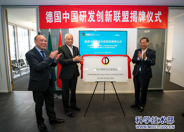 2018年7月8日,科技部部長、黨組書記王志剛在陪同李克強(qiáng)總理訪德并出席第五輪中德政府磋商期間,在德國柏林出席德國中國研發(fā)創(chuàng)新聯(lián)盟(以下簡稱“聯(lián)盟”)座談會,來自德國各地的12家中資機(jī)構(gòu)60余名代表參加會議。座談會前,王志剛部長與我駐德國大使史明德為新近在德國獲得正式法人地位的聯(lián)盟揭牌。駐德國使館科技處、中國國際人才交流協(xié)會駐德國科隆代表處負(fù)責(zé)人與會。