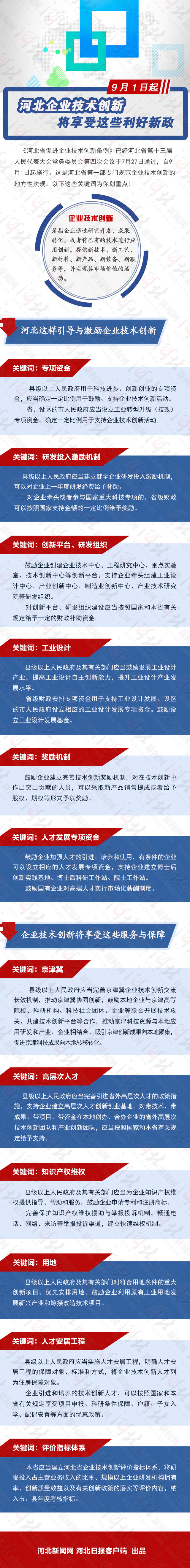 河北省促進企業技術創新條例》已經河北省第十三屆人民代表大會常務委員會第四次會議于7月27日通過,自2018年9月1日起施行。這是河北省部專門規范企業技術創新的地方性法規。以下這些關鍵詞為你劃重點!