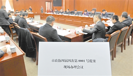 昨日,市政協(xié)四屆四次會(huì)議一號(hào)提案現(xiàn)場(chǎng)辦理會(huì)現(xiàn)場(chǎng)。 記者張路橋攝