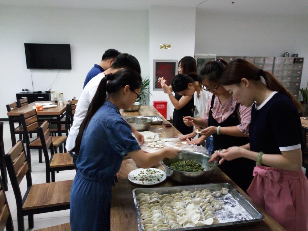全體員工齊聚一堂,拿出已經準備好的餡料和面團,大家摩拳擦掌,迫不及待地想展露一下自己的手藝。會搟皮兒的搟皮兒,會包餃子的包餃子,什么都不會的則虛心請教,每個員工都積極參與,大家通力合作,完成了一盤又一盤的餃子。后,大家看著各式各樣的餃子,都不禁樂開了花。品嘗后的成果時,熱氣騰騰的餃子拉近了彼此的距離,充滿著其樂融融、和諧融洽的氣氛。